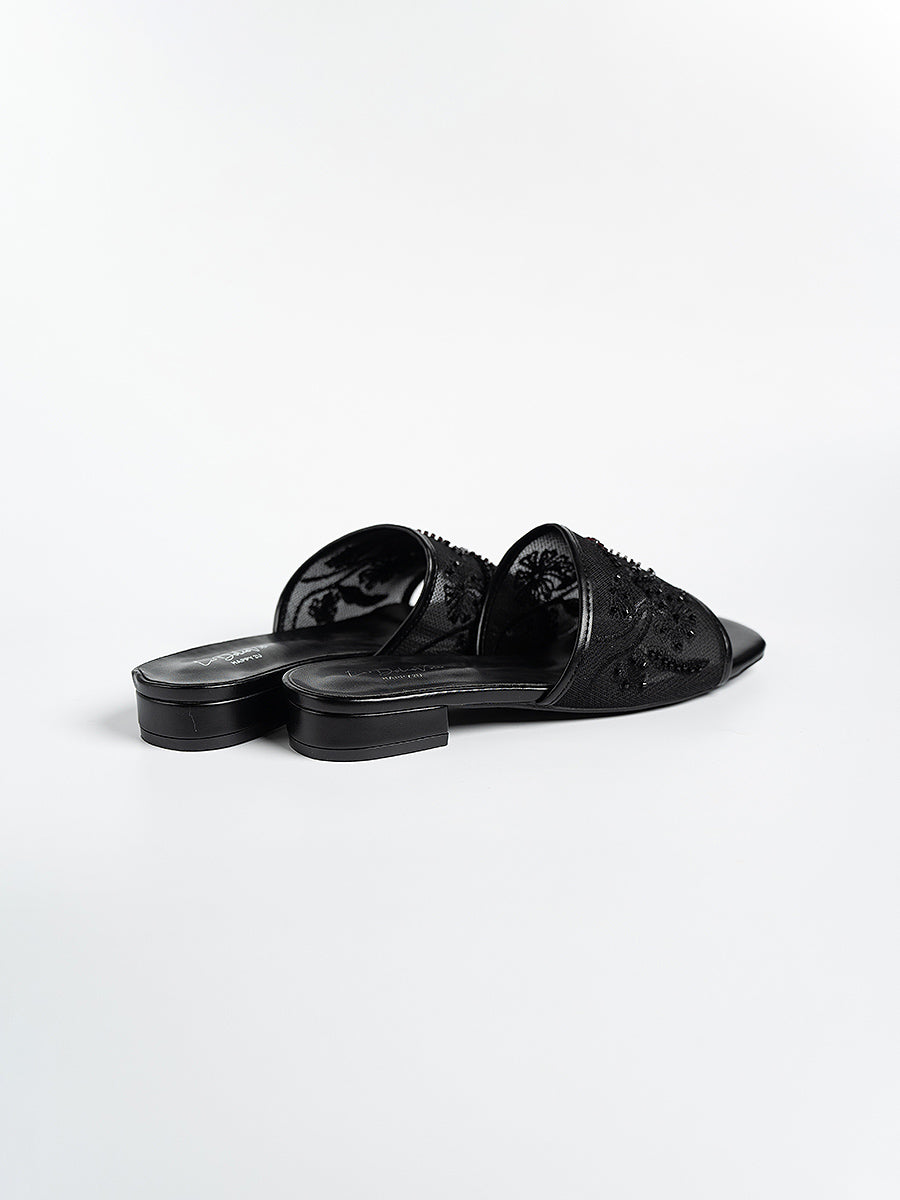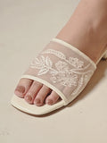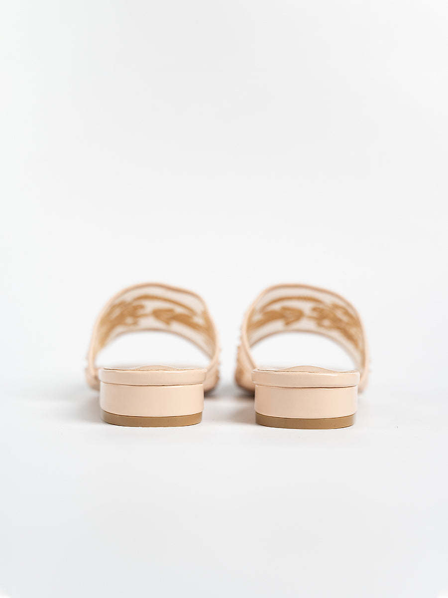 The Elysia Lace Sandal Slides exude charm and sophistication with intricate embroidery and delicate bead embellishments, adding a sweet, graceful touch. Effortlessly versatile, they transition from refined daytime moments to intimate evening gatherings—crafted for comfort without compromising style.