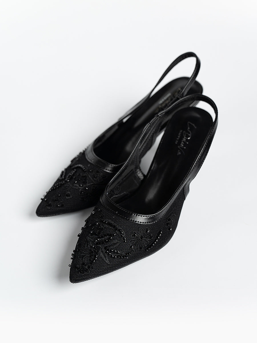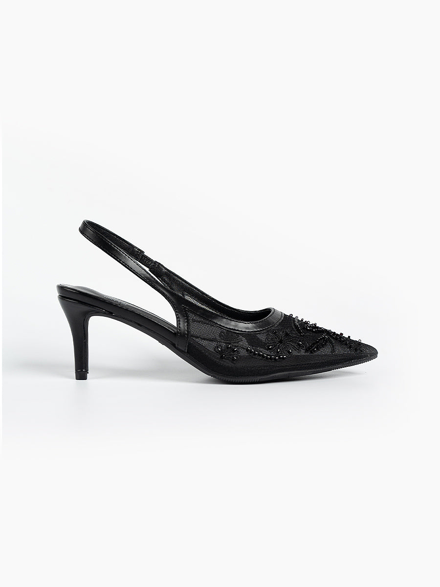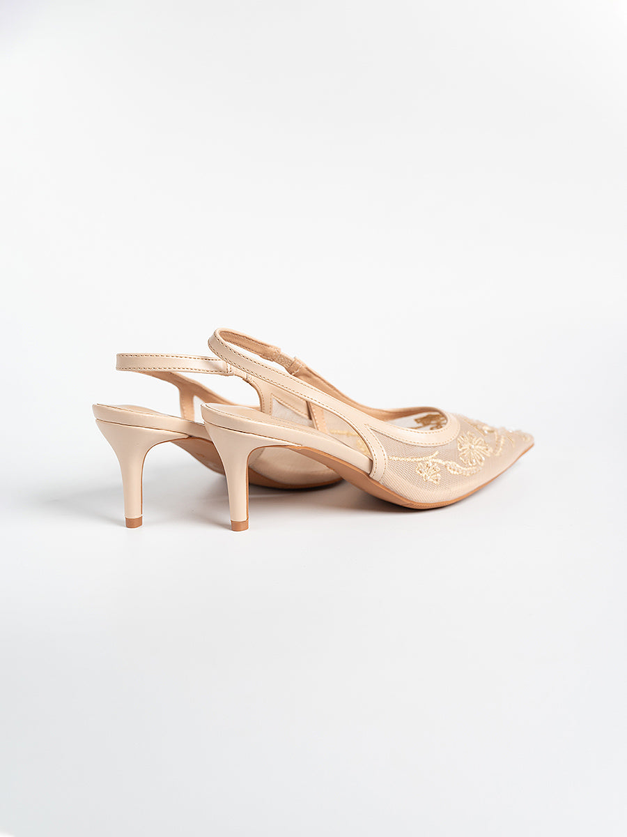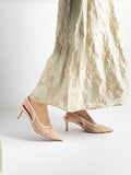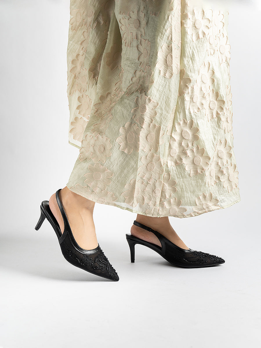 Evora Lace Slingbacks Pumps: For moments that call for a touch of elevation, with its mesh silhouette and slingback design, this pair seamlessly complements any ensemble. Whether it’s a graceful walk down the aisle, bridesmaid elegance, or a festive reception look, you’ll be amazed at how versatile these heels are—perfect for weddings and every celebration beyond.