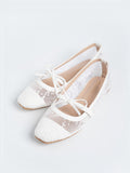 A graceful blend of lace and leather: Ezra Lace Ribbon Flats features delicate lace trimmed with smooth leather, tracing the artful curves of its peaked ribbon vamps and soft cushioned insoles — perfect for brides who embrace elegance without excess. Whether it’s for your solemnization ceremony or a chic wedding after-party, these shoes promise comfort, poise, and timeless charm with every step.