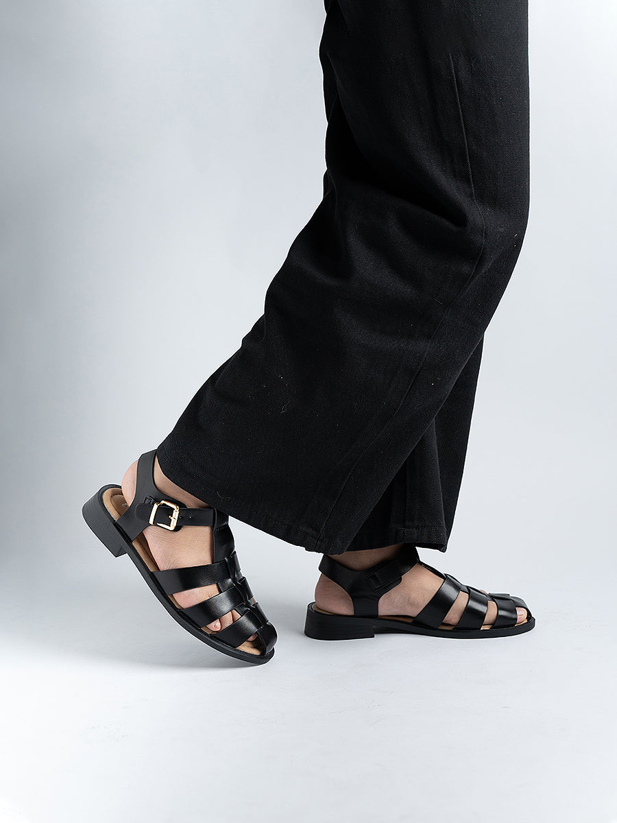The Felipe PU Cage Sandals are inspired by traditional fisherman styles, crafted from high-quality PU leather and designed with adjustable ankle buckles for a secure fit. Featuring lightly padded insoles, these sandals promise all-day comfort while keeping your look effortlessly chic.