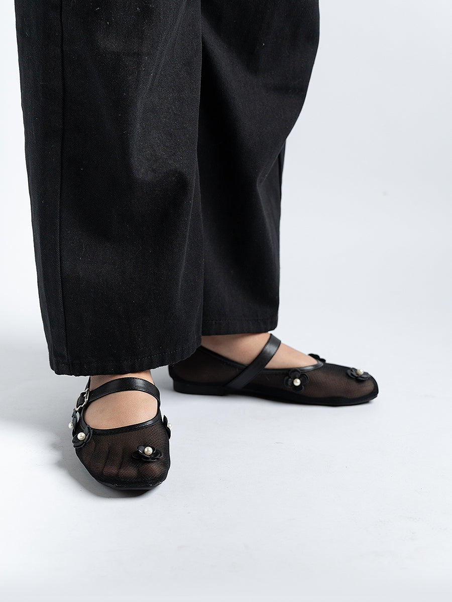 The Flower Mesh Ballerina Flats are so romantic and are just as elegant as heels. Crafted from soft, breathable mesh, they’re adorned with a delicate flower motif and finished with a chic buckled strap for a refined touch. Perfect for year-end celebrations and special occasions, they will make you look party ready in an instant.