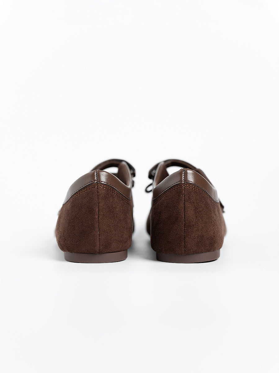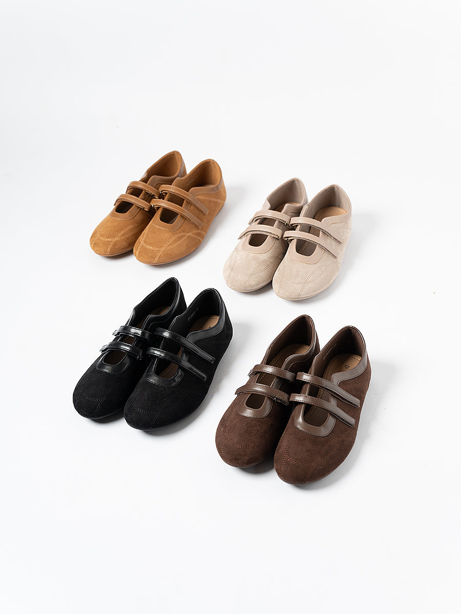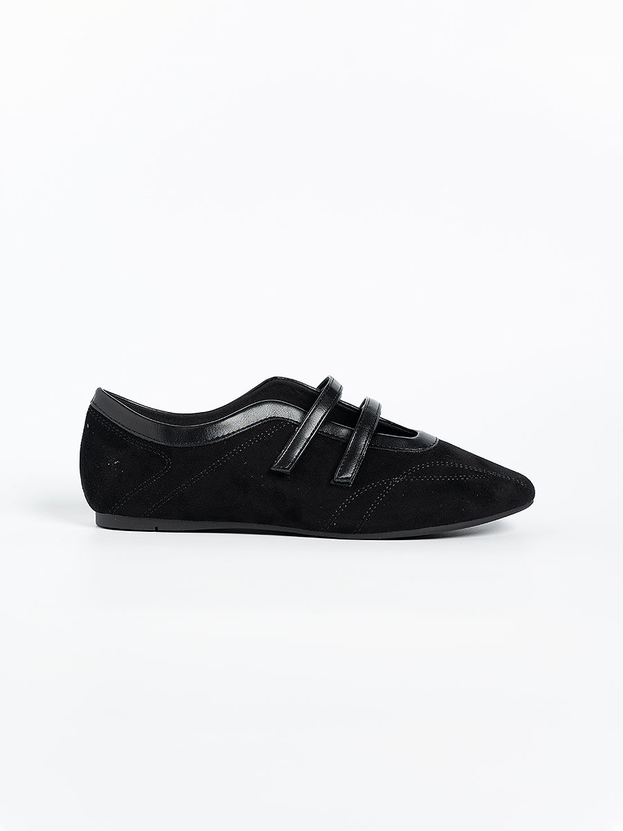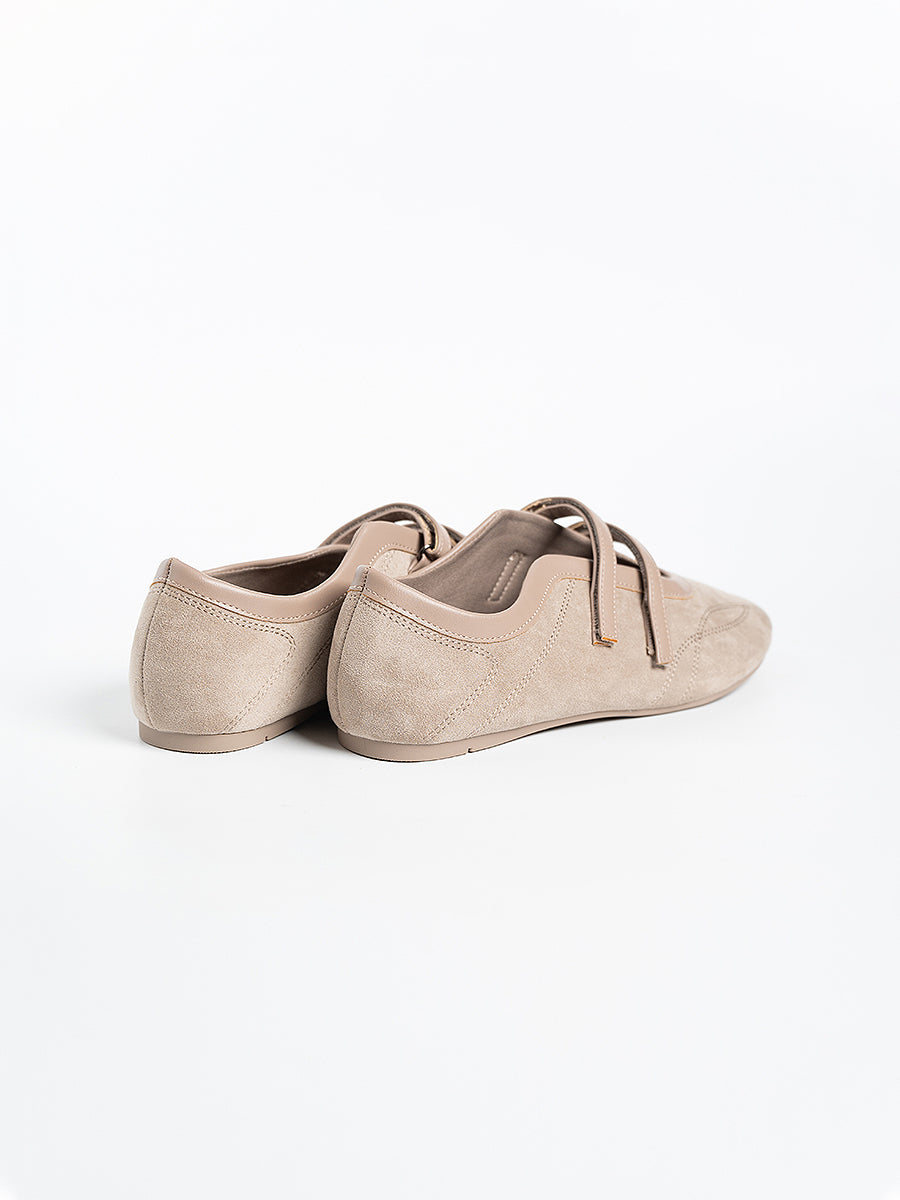 Voline Suede Flats: A suede reinterpretation of our signature Sport Ballerina, designed with a clean, minimal mood for everyday wear. Crafted from a refined blend of soft suede and smooth faux leather, this pair delivers a warm, polished aesthetic. Delicate stitching details highlight the classic round-toe silhouette, adding subtle character while maintaining effortless simplicity.