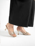 Slip into the Yaya Glitter Strap Heels and step beyond statement-making into true trendsetter territory. Designed with an easy slide-on silhouette, crisscrossing vamp straps inspired by Cleopatra elegance are highlighted with shimmering gold / silver lining. Finished with a flirty kitten heel, Yaya ensures every step shines—keeping your moment in the spotlight all night long.
